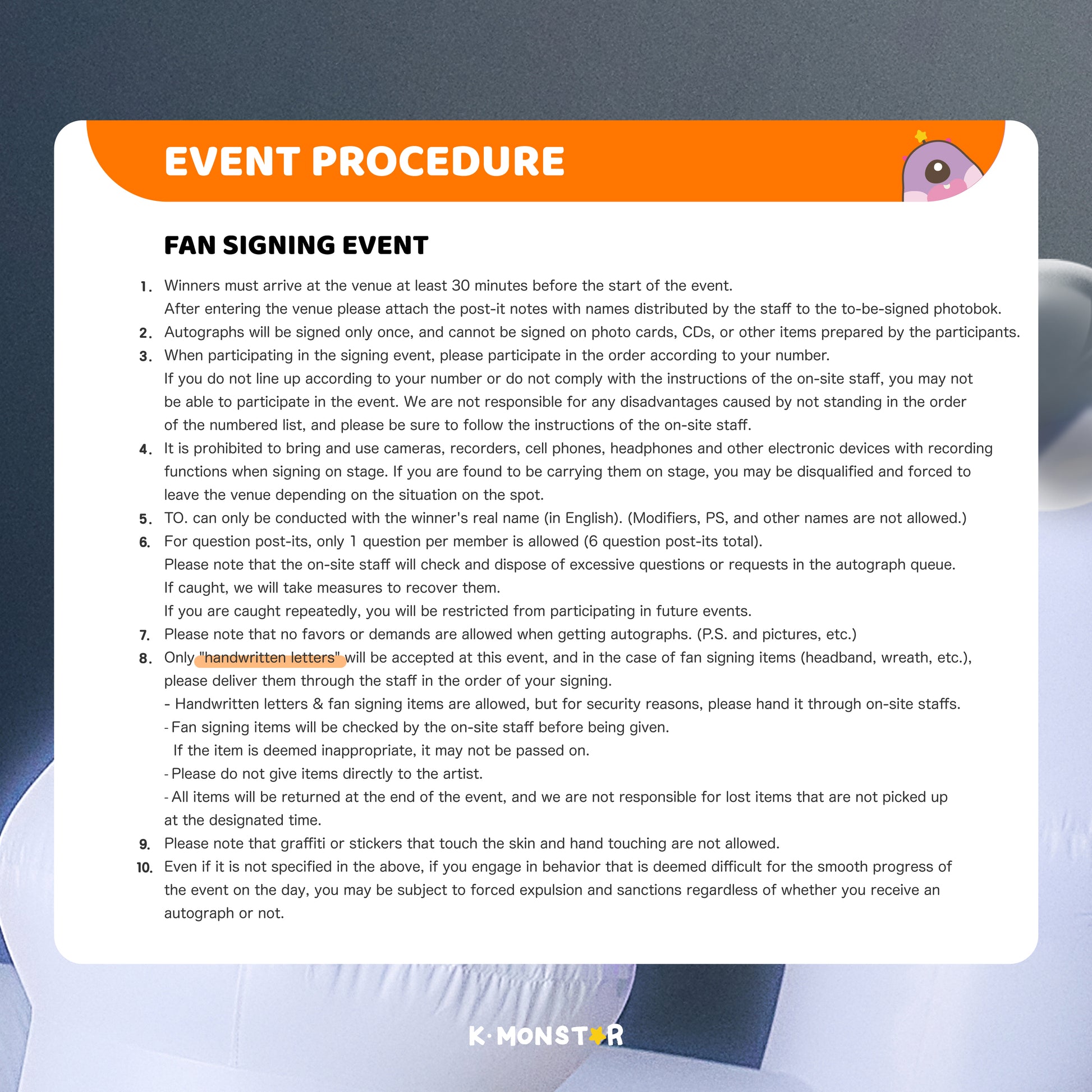 SEE ALL RETURN, EXCHANGE & REFUND POLICIES & UNBOXING VIDEO STANDARDS๐ฆ Return, exchange or refund request must be made via K-MONSTAR customer service within 7 days of receiving.